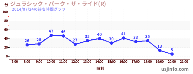 • ジュラシック・パーク・ザ・ライド(R)$B$N(B2014年07月24日の待ち時間