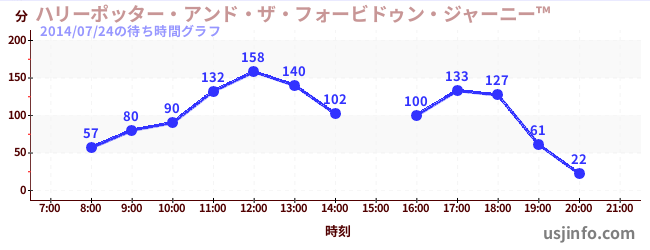 • ハリーポッター・アンド・ザ・フォービドゥン・ジャーニー™$B$N(B2014年07月24日の待ち時間