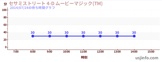 • セサミストリート 4-D ムービーマジック(TM)$B$N(B2014年07月24日の待ち時間