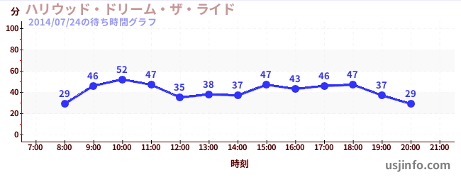 • ハリウッド・ドリーム・ザ・ライド〜バックドロップ〜$B$N(B2014年07月24日の待ち時間