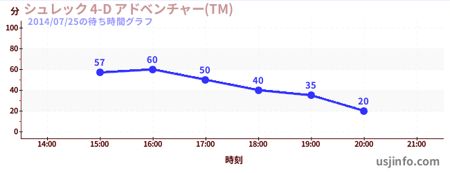 • シュレック 4-D アドベンチャー(TM)$B$N(B2014年07月25日の待ち時間