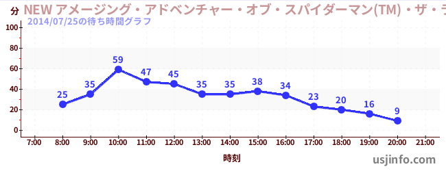 • NEW アメージング・アドベンチャー・オブ・スパイダーマン(TM)・ザ・ライド 4K3D$B$N(B2014年07月25日の待ち時間