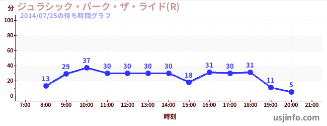 • ジュラシック・パーク・ザ・ライド(R)$B$N(B2014年07月25日の待ち時間