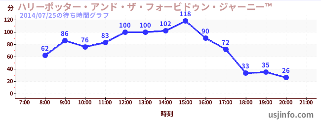 • ハリーポッター・アンド・ザ・フォービドゥン・ジャーニー™$B$N(B2014年07月25日の待ち時間
