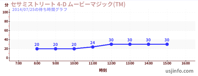 • セサミストリート 4-D ムービーマジック(TM)$B$N(B2014年07月25日の待ち時間