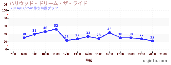 • ハリウッド・ドリーム・ザ・ライド〜バックドロップ〜$B$N(B2014年07月25日の待ち時間