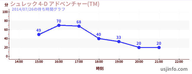 • シュレック 4-D アドベンチャー(TM)$B$N(B2014年07月26日の待ち時間