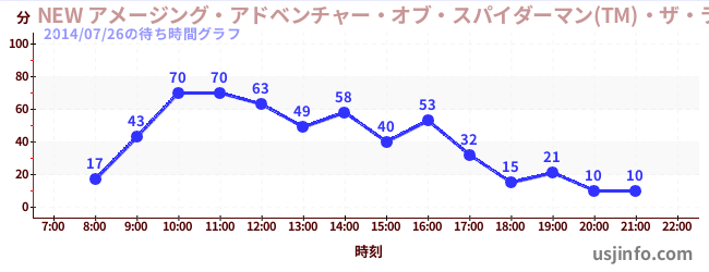 • NEW アメージング・アドベンチャー・オブ・スパイダーマン(TM)・ザ・ライド 4K3D$B$N(B2014年07月26日の待ち時間