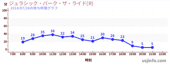 • ジュラシック・パーク・ザ・ライド(R)$B$N(B2014年07月26日の待ち時間