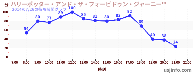 • ハリーポッター・アンド・ザ・フォービドゥン・ジャーニー™$B$N(B2014年07月26日の待ち時間