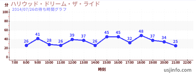 • ハリウッド・ドリーム・ザ・ライド$B$N(B2014年07月26日の待ち時間