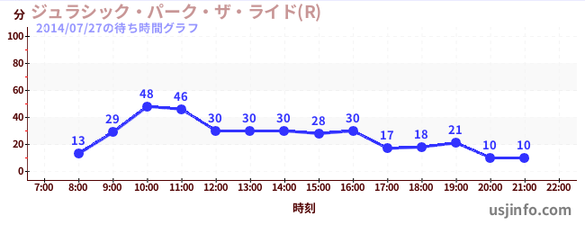 • ジュラシック・パーク・ザ・ライド(R)$B$N(B2014年07月27日の待ち時間