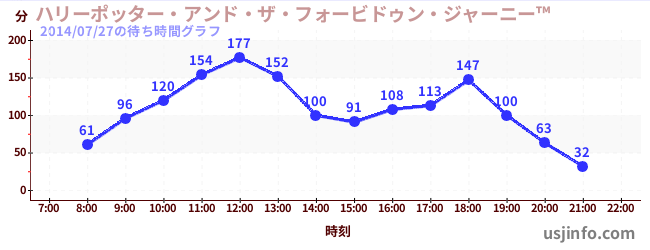 • ハリーポッター・アンド・ザ・フォービドゥン・ジャーニー™$B$N(B2014年07月27日の待ち時間