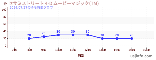 • セサミストリート 4-D ムービーマジック(TM)$B$N(B2014年07月27日の待ち時間