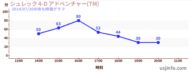 • シュレック 4-D アドベンチャー(TM)$B$N(B2014年07月30日の待ち時間