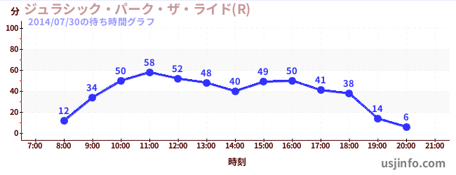 • ジュラシック・パーク・ザ・ライド(R)$B$N(B2014年07月30日の待ち時間