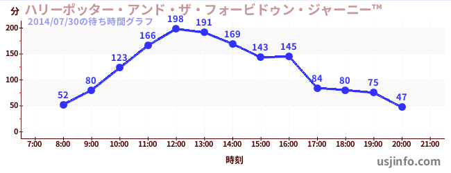 • ハリーポッター・アンド・ザ・フォービドゥン・ジャーニー™$B$N(B2014年07月30日の待ち時間