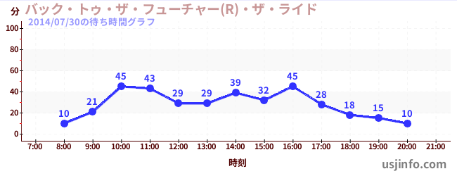 • バック・トゥ・ザ・フューチャー(R)・ザ・ライド$B$N(B2014年07月30日の待ち時間