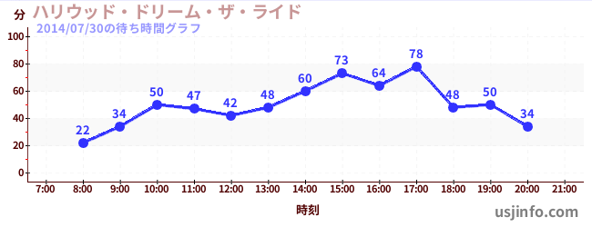 • ハリウッド・ドリーム・ザ・ライド〜バックドロップ〜$B$N(B2014年07月30日の待ち時間