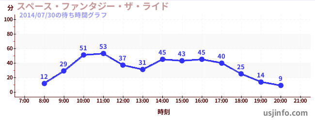 • スペース・ファンタジー・ザ・ライド$B$N(B2014年07月30日の待ち時間