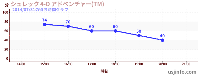 • シュレック 4-D アドベンチャー(TM)$B$N(B2014年07月31日の待ち時間