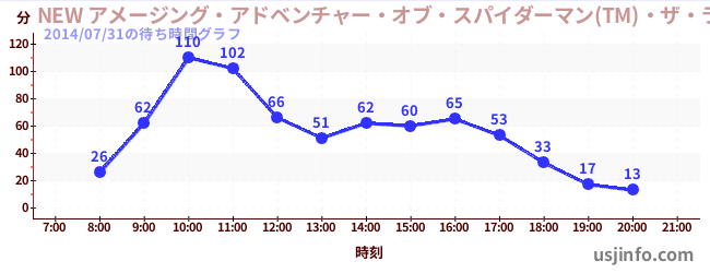 • NEW アメージング・アドベンチャー・オブ・スパイダーマン(TM)・ザ・ライド 4K3D$B$N(B2014年07月31日の待ち時間