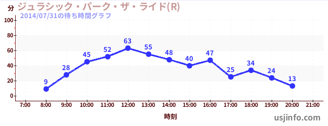 • ジュラシック・パーク・ザ・ライド(R)$B$N(B2014年07月31日の待ち時間