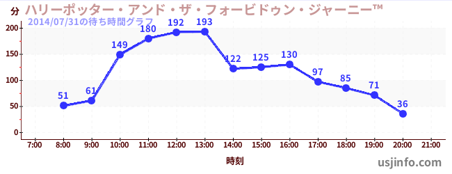 • ハリーポッター・アンド・ザ・フォービドゥン・ジャーニー™$B$N(B2014年07月31日の待ち時間