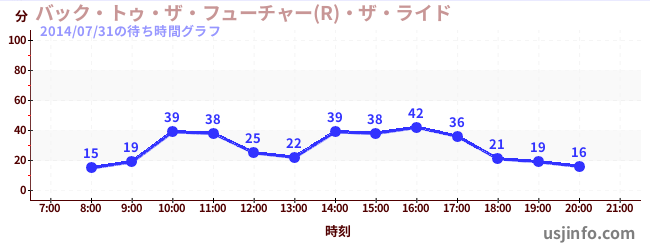 • バック・トゥ・ザ・フューチャー(R)・ザ・ライド$B$N(B2014年07月31日の待ち時間