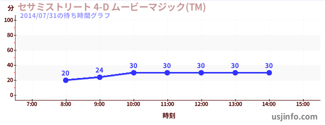 • セサミストリート 4-D ムービーマジック(TM)$B$N(B2014年07月31日の待ち時間