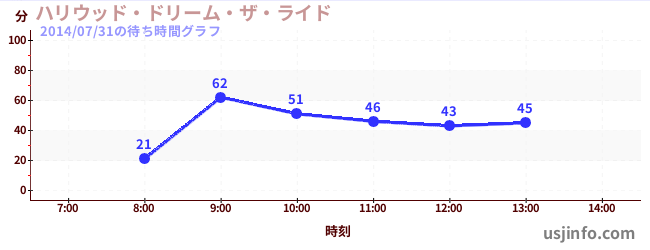• ハリウッド・ドリーム・ザ・ライド$B$N(B2014年07月31日の待ち時間