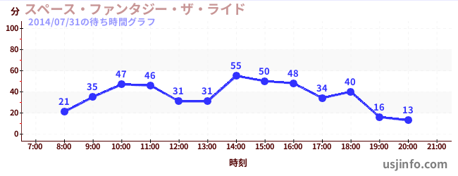 • スペース・ファンタジー・ザ・ライド$B$N(B2014年07月31日の待ち時間