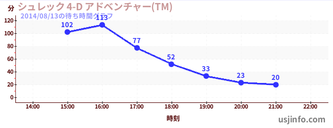 • シュレック 4-D アドベンチャー(TM)$B$N(B2014年08月13日の待ち時間
