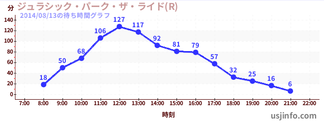 • ジュラシック・パーク・ザ・ライド(R)$B$N(B2014年08月13日の待ち時間