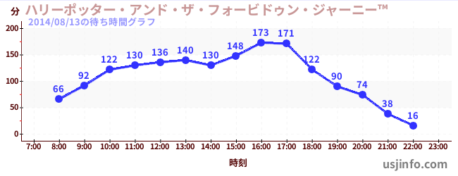 • ハリーポッター・アンド・ザ・フォービドゥン・ジャーニー™$B$N(B2014年08月13日の待ち時間