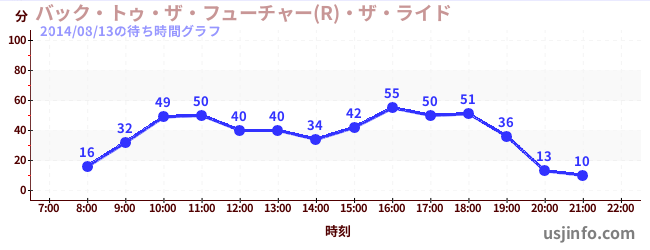 • バック・トゥ・ザ・フューチャー(R)・ザ・ライド$B$N(B2014年08月13日の待ち時間