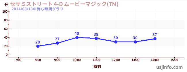 • セサミストリート 4-D ムービーマジック(TM)$B$N(B2014年08月13日の待ち時間