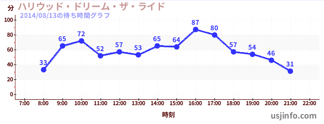 • ハリウッド・ドリーム・ザ・ライド〜バックドロップ〜$B$N(B2014年08月13日の待ち時間