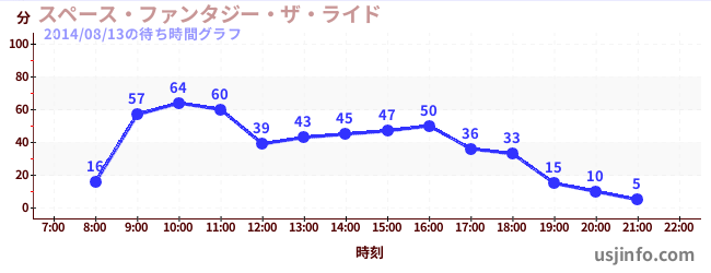 • スペース・ファンタジー・ザ・ライド$B$N(B2014年08月13日の待ち時間