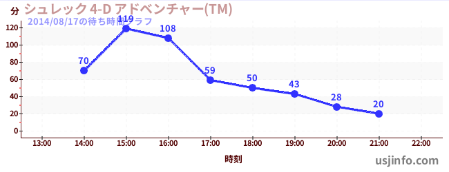 • シュレック 4-D アドベンチャー(TM)$B$N(B2014年08月17日の待ち時間