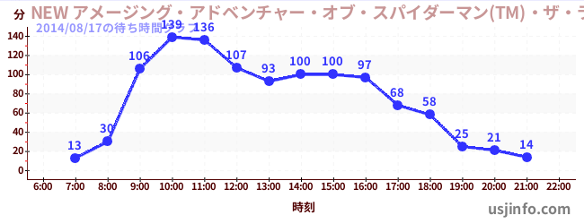• NEW アメージング・アドベンチャー・オブ・スパイダーマン(TM)・ザ・ライド 4K3D$B$N(B2014年08月17日の待ち時間