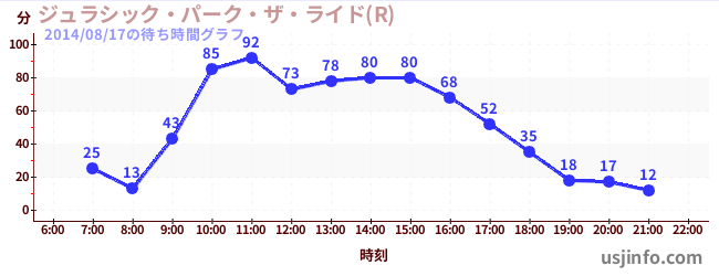 • ジュラシック・パーク・ザ・ライド(R)$B$N(B2014年08月17日の待ち時間