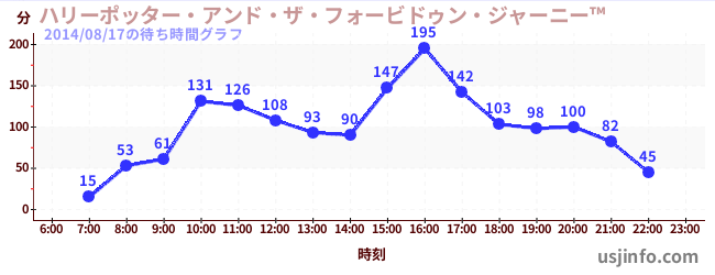 • ハリーポッター・アンド・ザ・フォービドゥン・ジャーニー™$B$N(B2014年08月17日の待ち時間