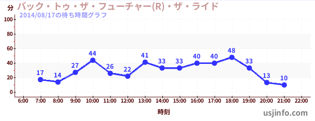 • バック・トゥ・ザ・フューチャー(R)・ザ・ライド$B$N(B2014年08月17日の待ち時間