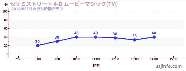 • セサミストリート 4-D ムービーマジック(TM)$B$N(B2014年08月17日の待ち時間