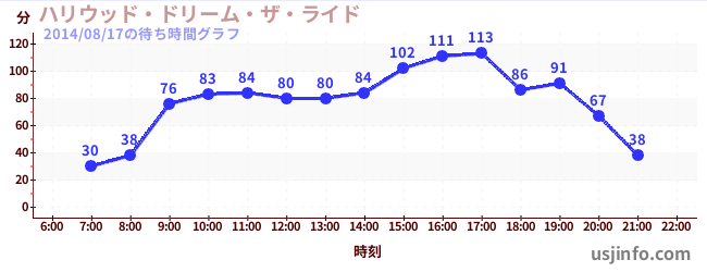 • ハリウッド・ドリーム・ザ・ライド$B$N(B2014年08月17日の待ち時間