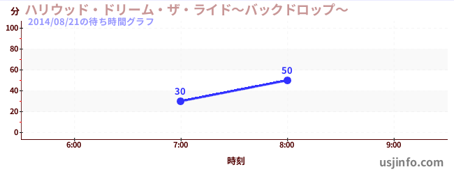 • ハリウッド・ドリーム・ザ・ライド〜バックドロップ〜$B$N(B2014年08月21日の待ち時間