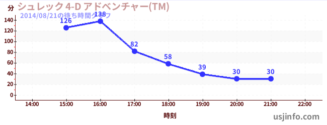 • シュレック 4-D アドベンチャー(TM)$B$N(B2014年08月21日の待ち時間