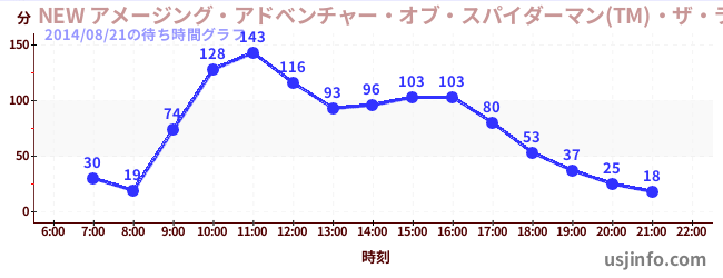 • NEW アメージング・アドベンチャー・オブ・スパイダーマン(TM)・ザ・ライド 4K3D$B$N(B2014年08月21日の待ち時間
