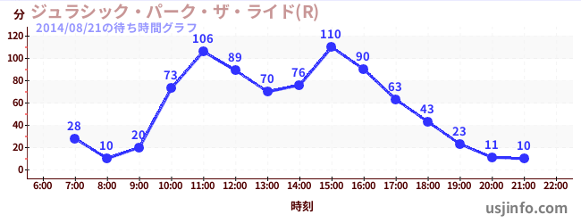 • ジュラシック・パーク・ザ・ライド(R)$B$N(B2014年08月21日の待ち時間